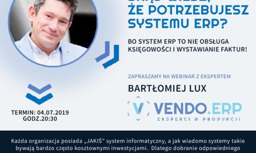 VENDO.ERP wraz Instytutem Doskonalenia Produkcji zaprasza na webinar z ekspertem! Już 4 lipca 2019 roku, o godz. 20:00 serdecznie zapraszamy na webinar „Skąd wiesz, że...